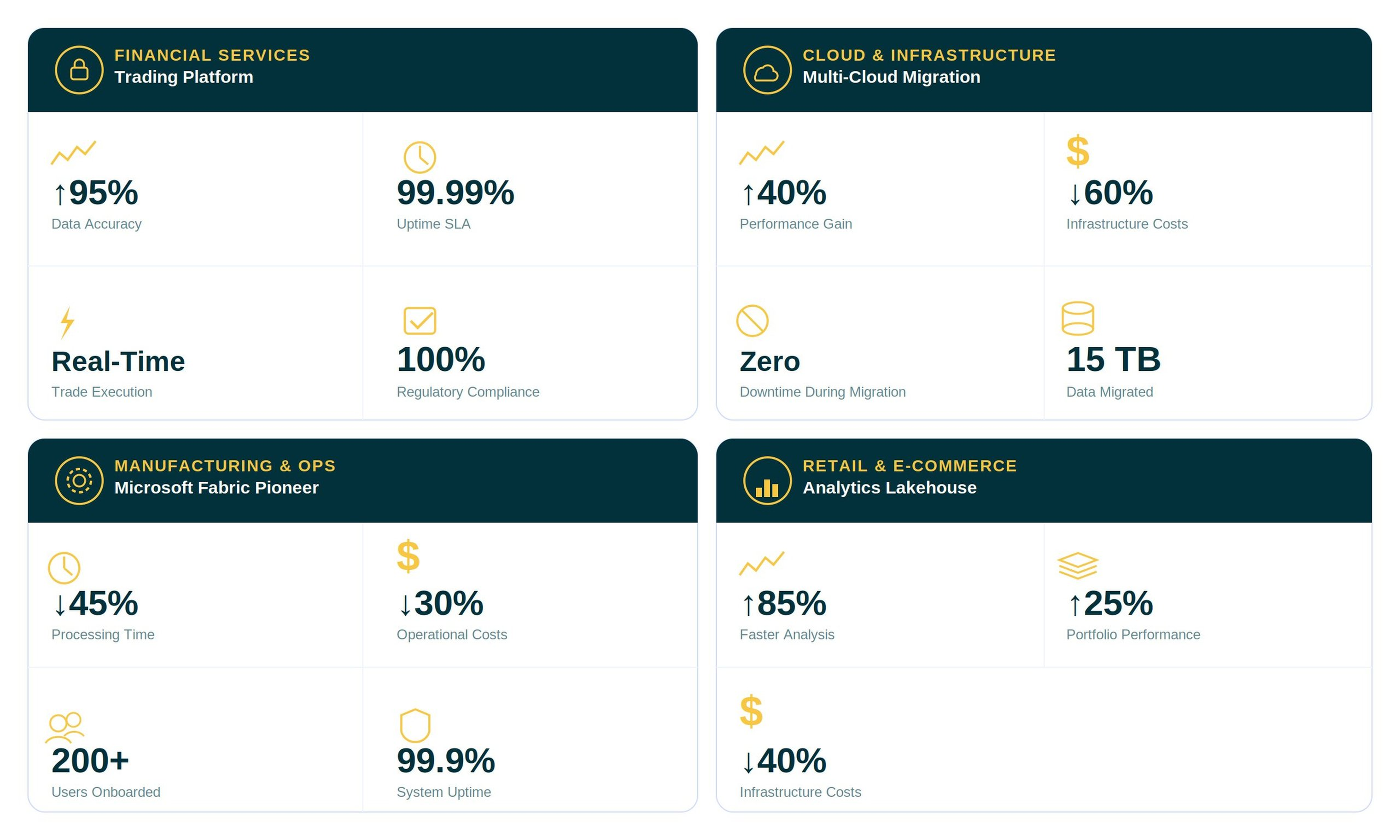 - 40–60% cost reduction delivered