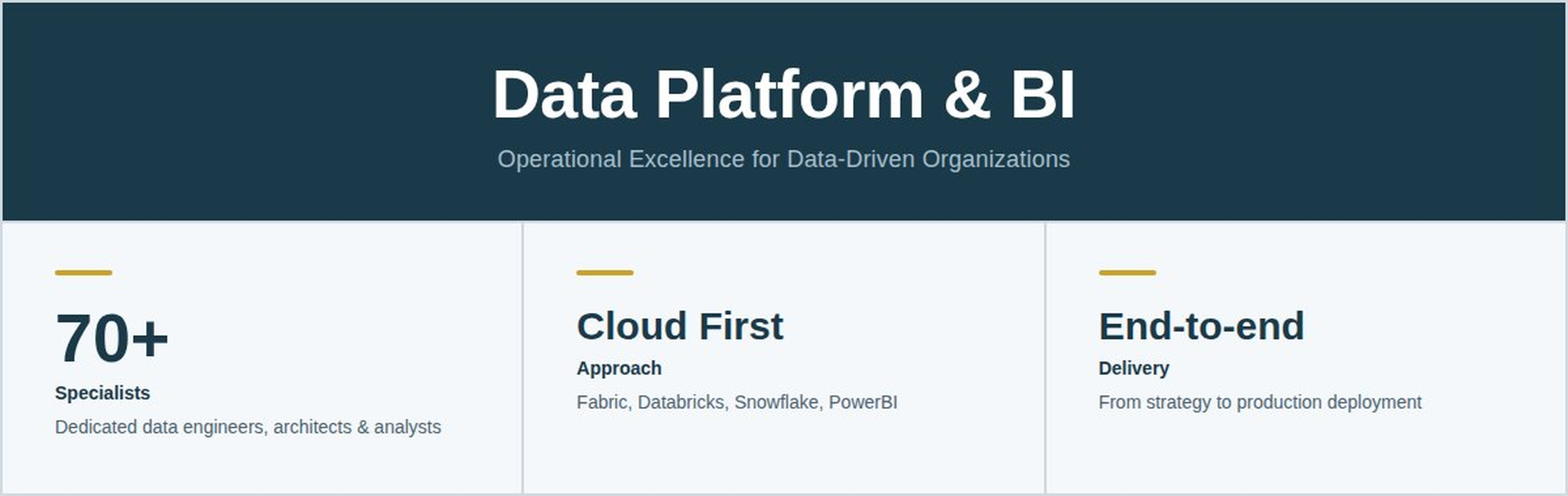 That combination: deep technical craft paired with genuine business engagement, is what our clients feel in every interaction, and what makes our team an environment where serious data professionals want to build their careers.